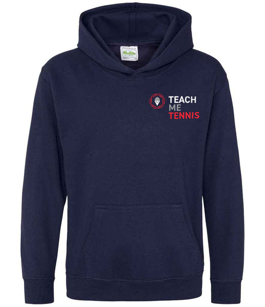 Teach Me Tennis logo printed on the left chest and on the back of the hoodie.